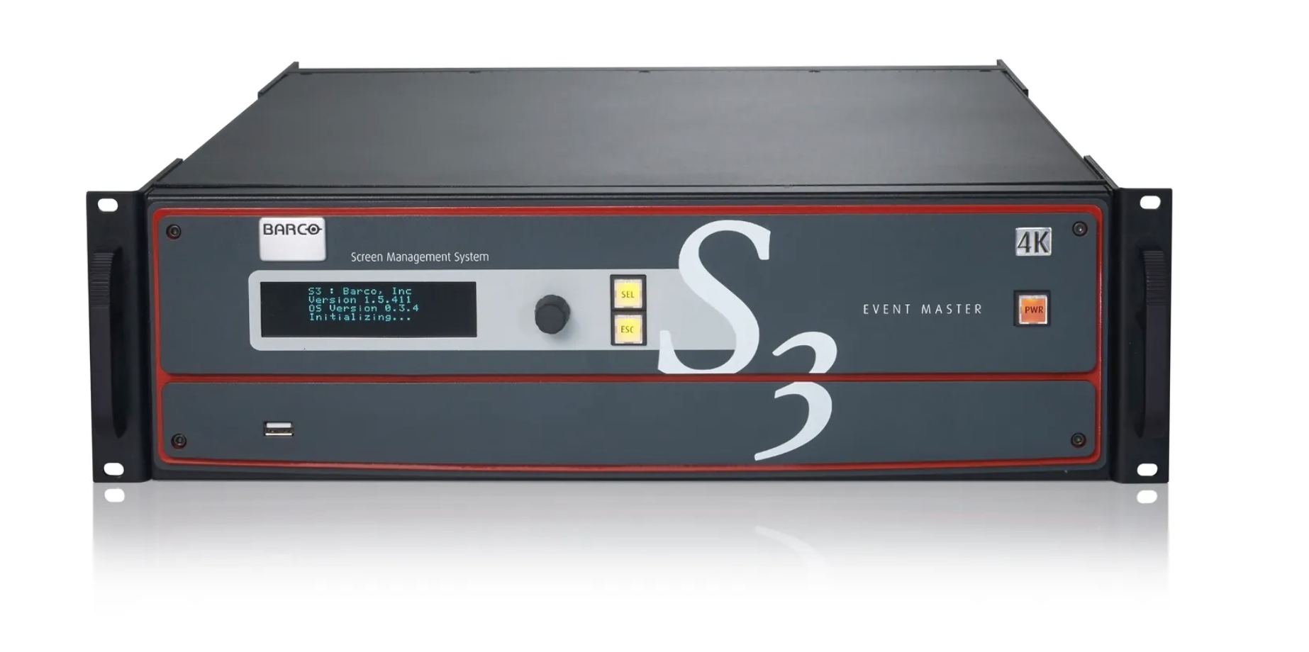 The Barco S3-4K is a compact, modular, and rugged screen management system designed for live events, offering 12-14 input channels, 4 PROGRAM outputs, 4 AUX outputs, and 2 dedicated Multiviewer outputs. It provides up to 4K60p resolution, low latency, and is part of the Event Master series, allowing for chassis expansion.